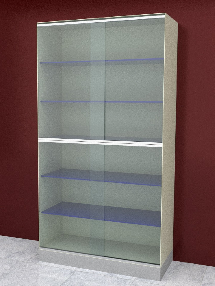 Vitrina alta con entrepaños y puertas corredizas de vidrio